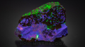 通常光では地味な標本ですが、ミネラライト(紫外線短波)でカラフルに蛍光します