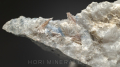 他に青色のベニト石(蛍光性SW)、薄青色のリューコスフェン(非蛍光性)、曹長石の無色透明美結晶等を伴います