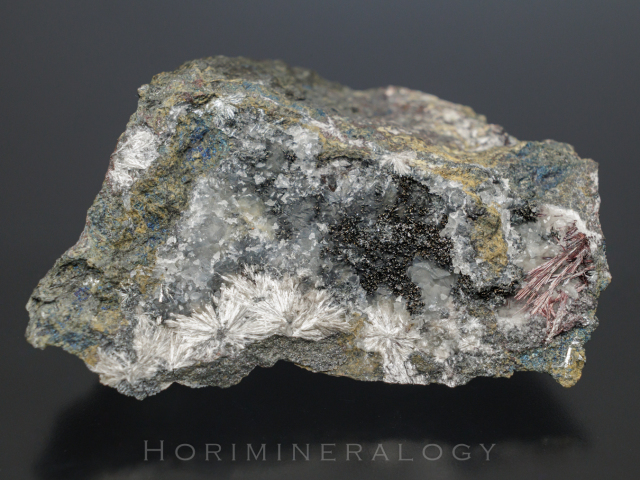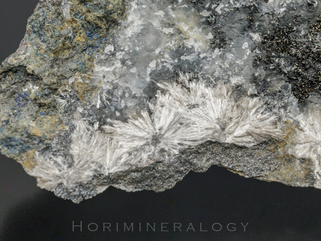 輝安鉱:鉛黒色金属光沢太針状結晶