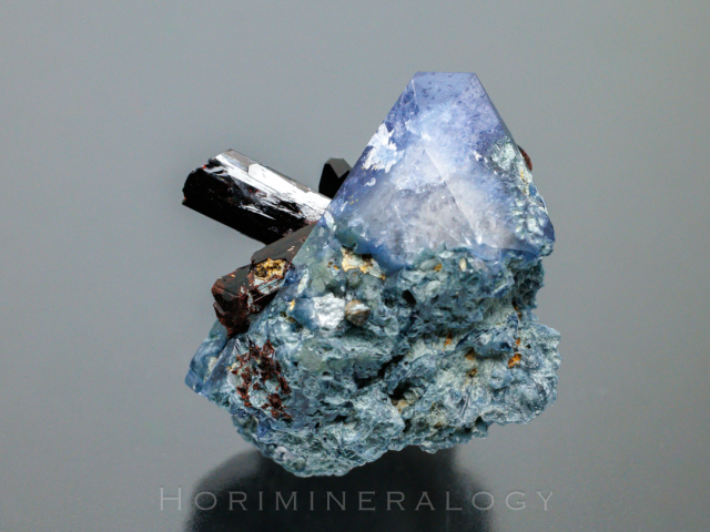 Formula: BaTiSi3O9 Crystal System: Hexagonal Hardness: 6-6½ Density: 3.64-3.67 蛍光性 Benitoiteグループ 楽しい鉱物図鑑(愛蔵版)166p
