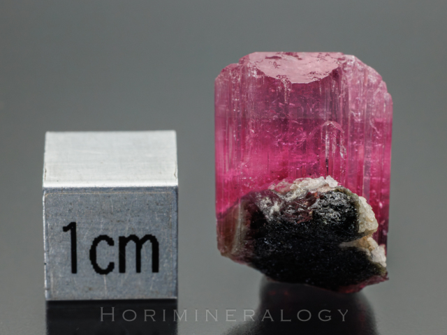濃ピンク色部がリチア電気石で内側の黒色部は鉄電気石になります