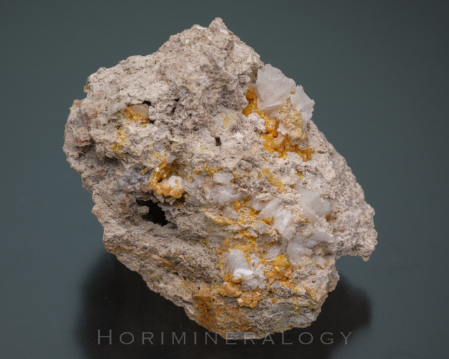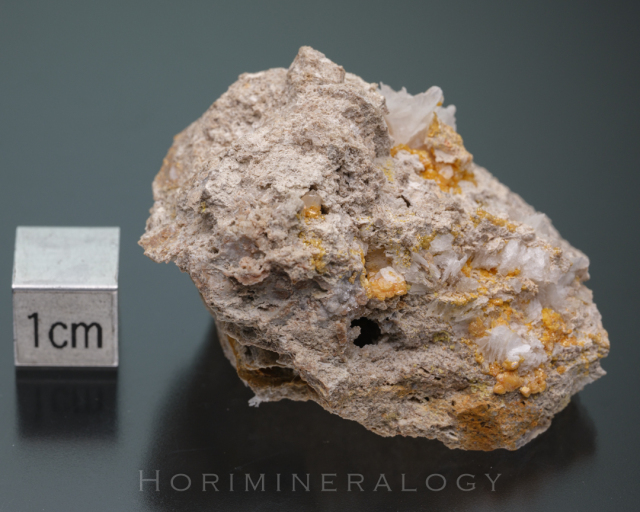 この産地では水銀・ハロゲン系の希産鉱物が多数報告されていおり本標本にも伴っている可能性がある。