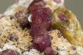 黄褐色の四角い結晶はベスブ石です。